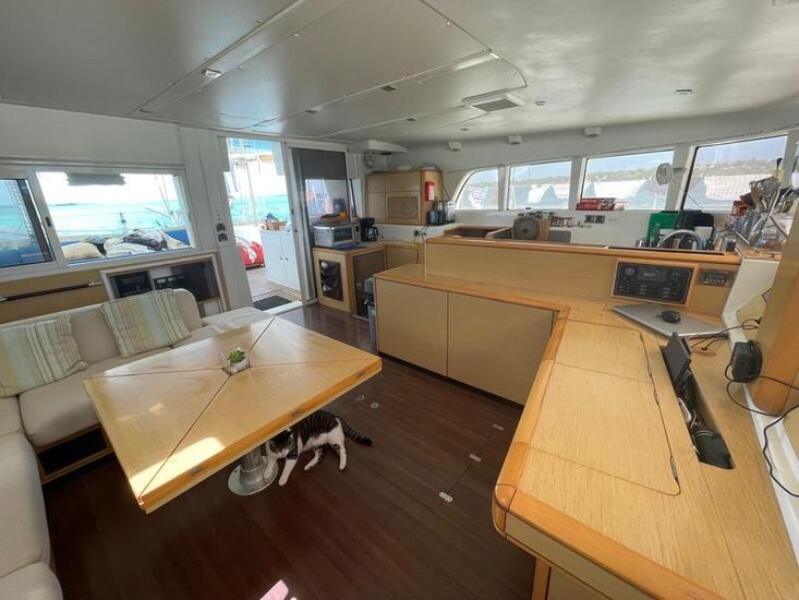The galley up is open to the rest of the salon so that the cook can socialize with everybody while preparing meals and has
