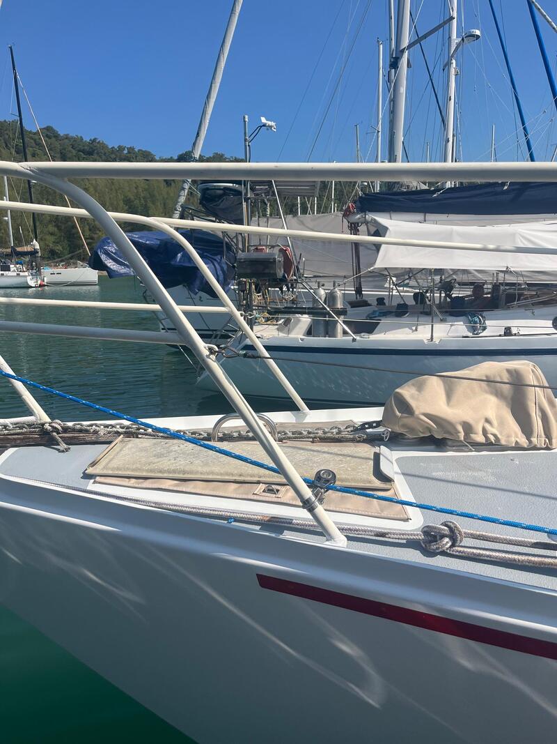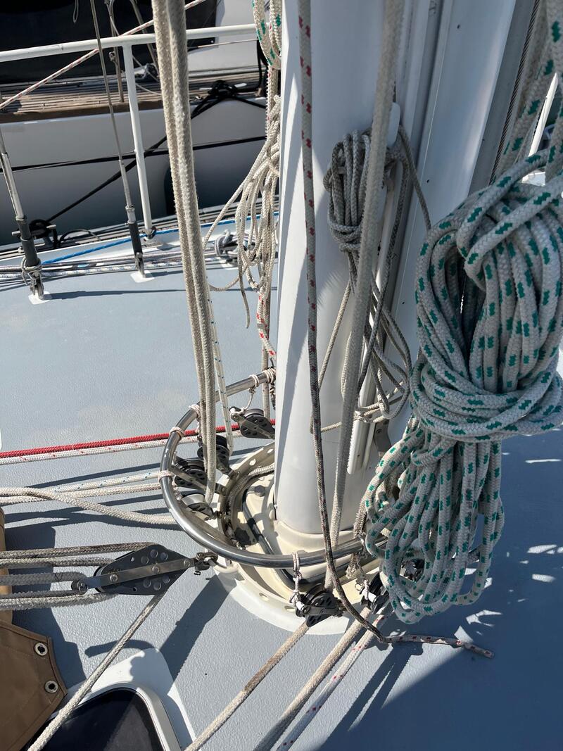 Running rigging in fair condition. 1 x Electrical Standard 800W NZ made Winch. 4 x Manual Self Tailing Winch. Mast: 15M aluminum single spreaders. Spinnaker/whisker pole store on mast. Standing rigging replaced 2016 by Yachtworx Langkawi.