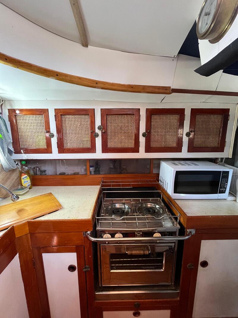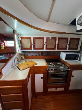 Galley: 1 x Electrical water pump 4.5GPM for pressurized fresh water supply. Force10 stove with 15L external Viking LPG tank. Microwave: 240V.