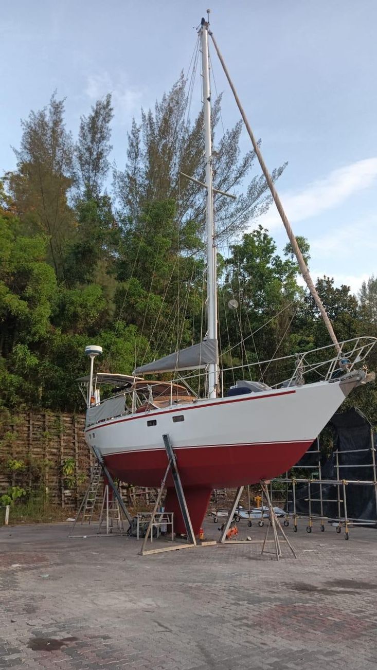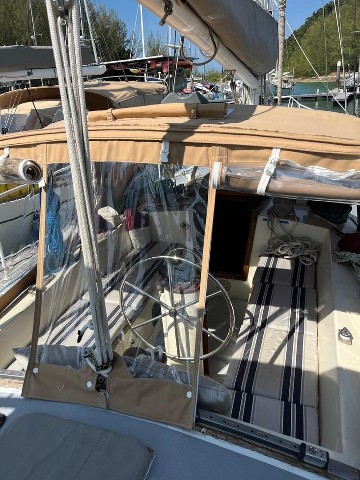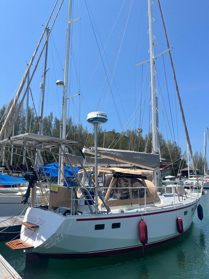 From the current owner: "We have owned Crimson Tide since 2015, but due to our busy marine business, never had much time to take her out. We know her history right from her builder back in Whangarei, NZ (he actually milled his own timber on his farm to build the interior), met the second owners that brought her to Langkawi. All they could say was Crimson Tide was a very comfortable LOB for a couple and a true blue water cruiser that would take you safely anywhere..."