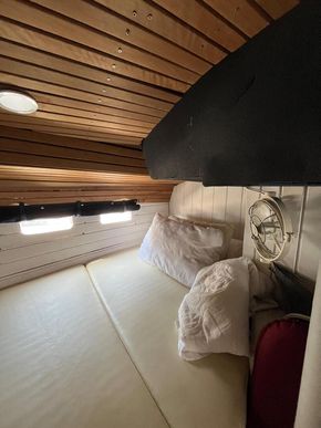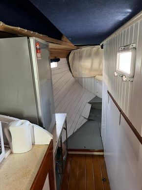 Spacious Saloon open plan, will sleep 2. 3 x 12V electrical fans and 4 static ventilation dorades.