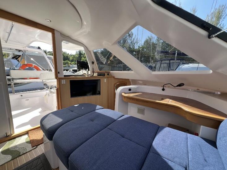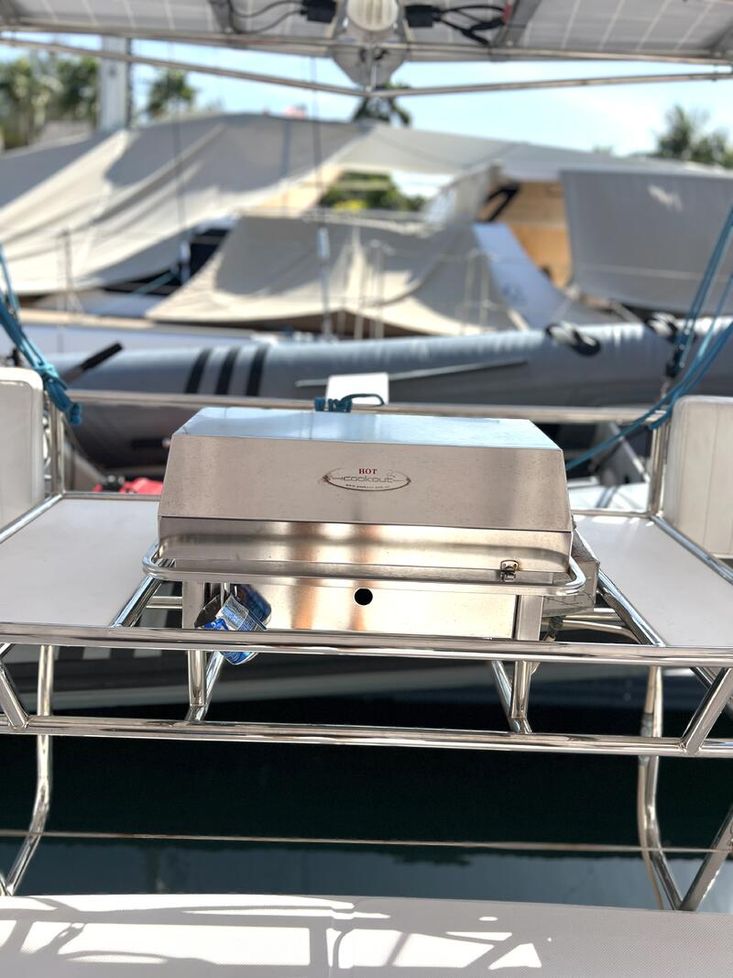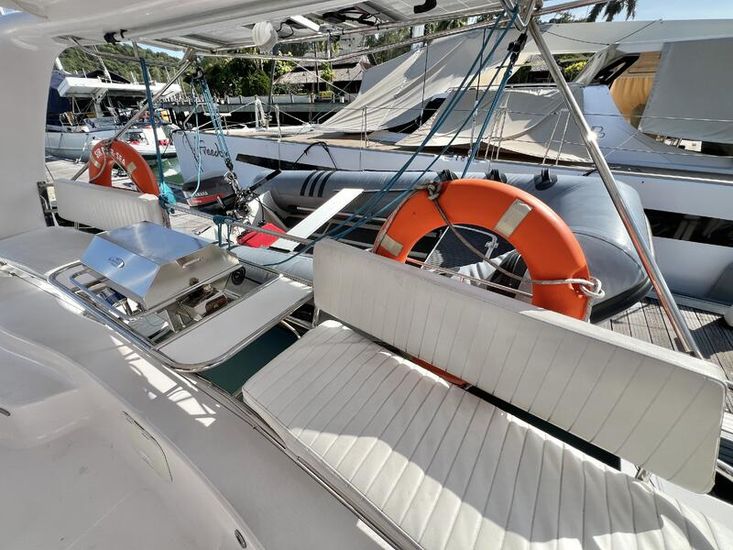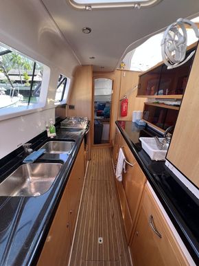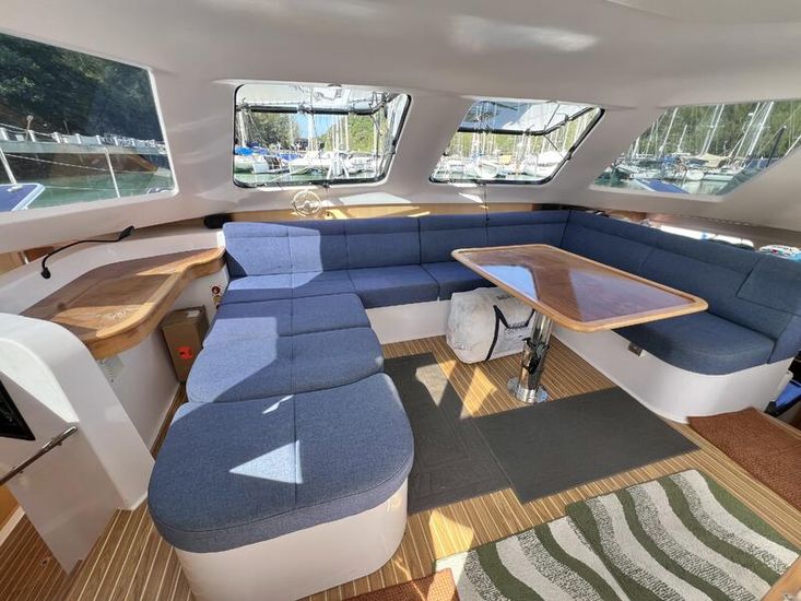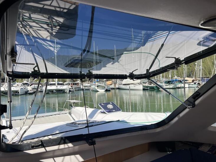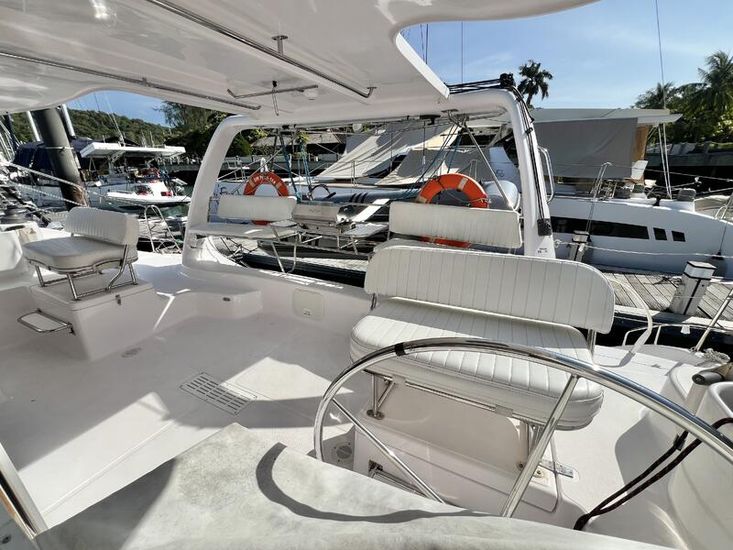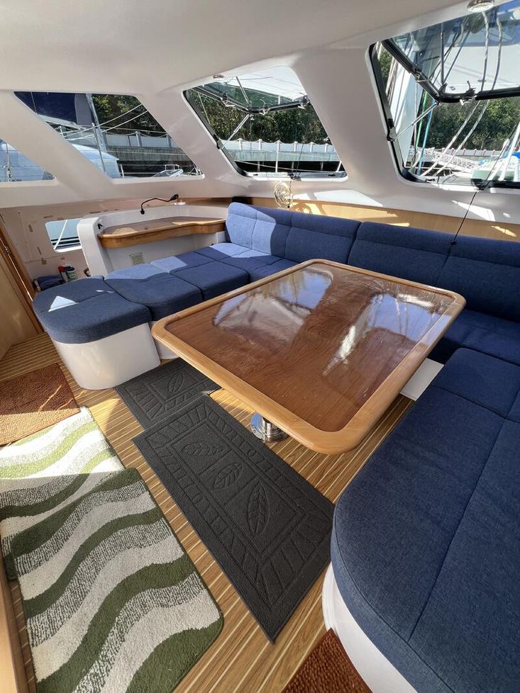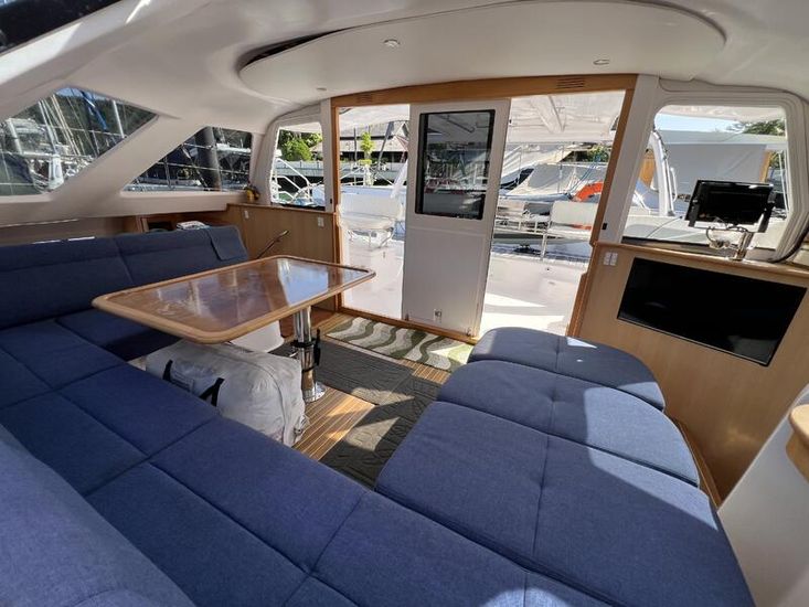 The Seawind 1250 is renowned among experienced cruisers for striking that sweet spot between performance and comfort. She sails beautifully in light airs yet remains composed when the breeze fills in. The protected helm positions are a standout feature--especially in tropical downpours or tropical sun--and the open-plan saloon with those signature tri-folding doors creates a seamless indoor-outdoor living space that's perfect for the region. With a beam of 6.8m and a modest 1.2m draft, she'll slip into those shallow anchorages where bigger cats can't go.